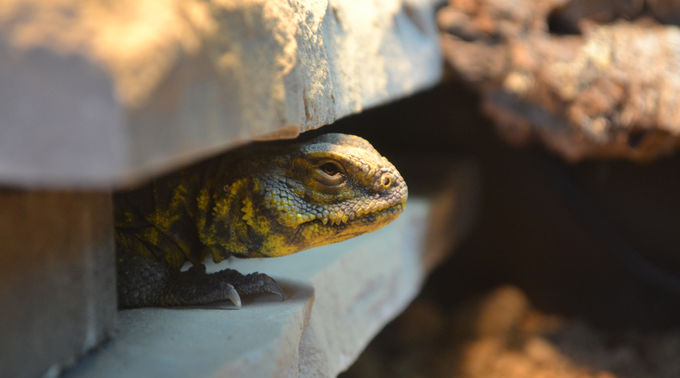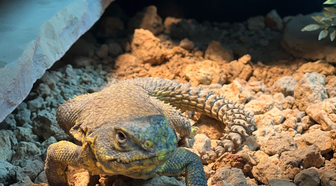Meet Gual, our vibrant yellow Saharan Uromastyx. Hailing from the arid deserts of North Africa, these resilient lizards have adapted to survive in some of the harshest environments on Earth. Gual's remarkable ability to regulate his body temperature and conserve water is a testament to the incredible diversity of life on our planet. As he shares his fascinating biology and behavior with our visitors, Gual will undoubtedly inspire a sense of wonder and curiosity about these incredible desert dwellers. With his striking yellow coloration, Gual is a true standout in our educational programs, teaching us about the unique characteristics and adaptations of these remarkable animals.
